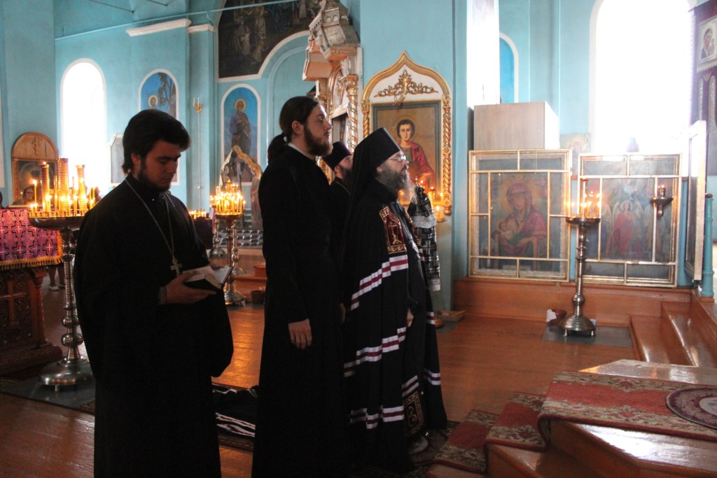 Его Преосвященству сослужили настоятель храма иерей Илия Филатов, благочинный Богоявленского благочиннического округа протоиерей Александр Пронин и диакон Павел Дрожжин.