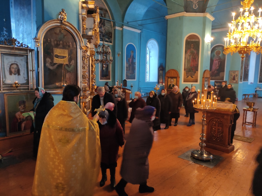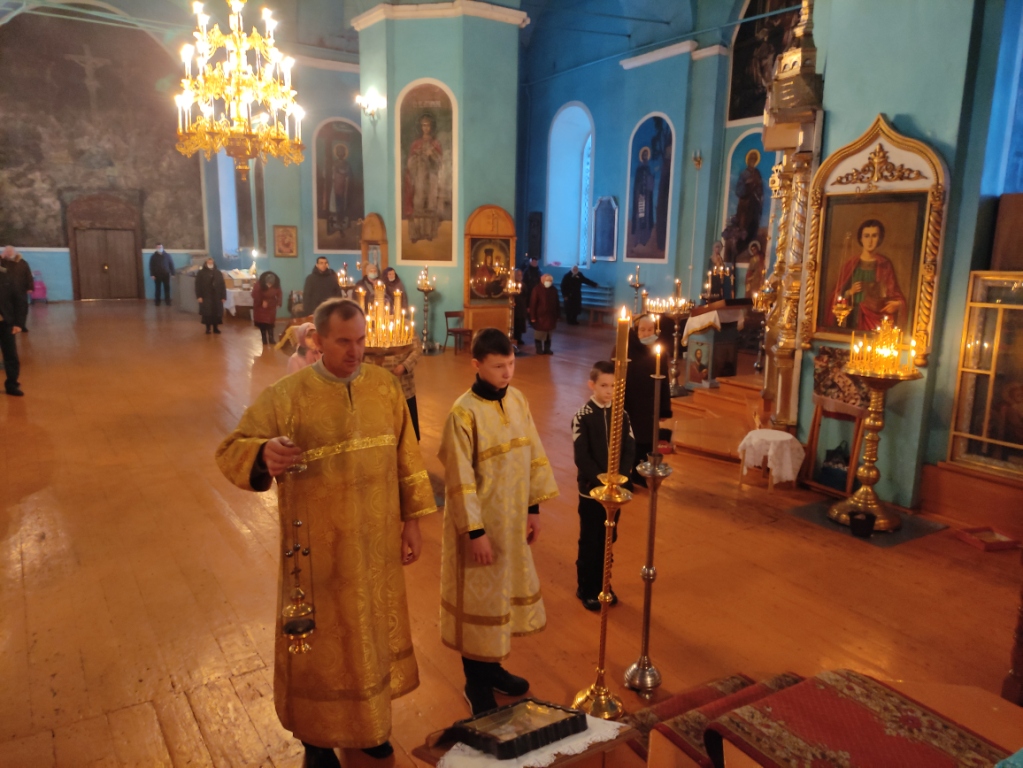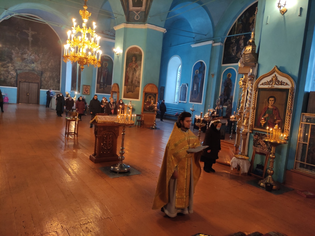 На сугубой ектении были вознесены прошения о единстве Православной Церкви и сохранении Церкви от разделений и расколов, а так же молитвенные прошения об избавлении от распространения коронавирусной инфекции. После сугубой ектении отец Илия вознес молитву о мире на Украине и молитву, во время распространения вредоносного поветрия чтомую.