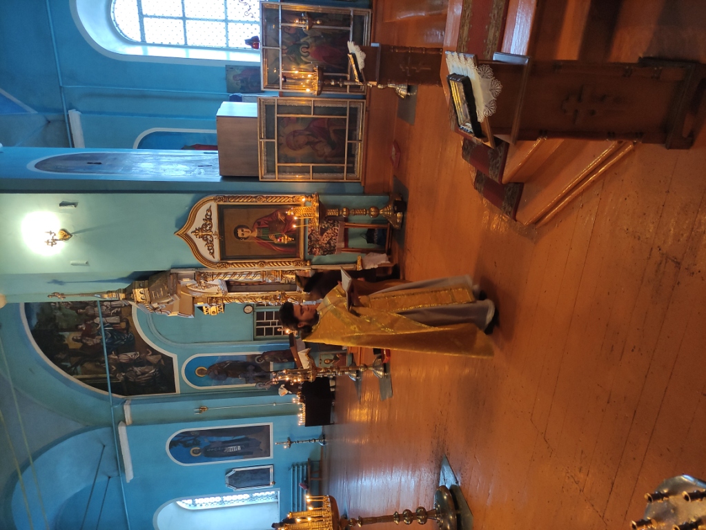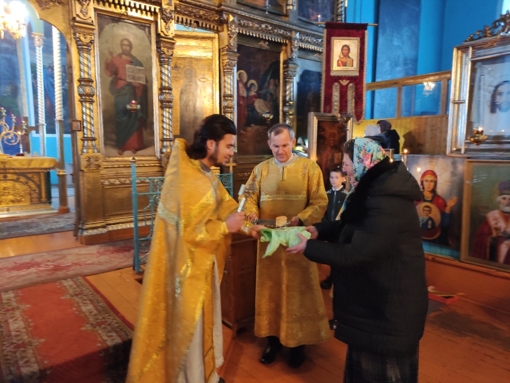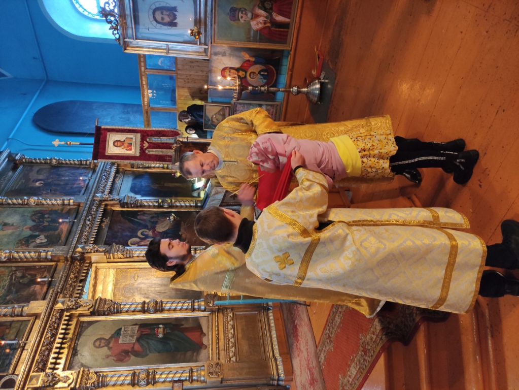 После отпуста Литургии отец Илия обратился к пастве с проповедью. Также настоятель поздравил с днем рождения певчую хора Ирину Валентиновну Пискунову.